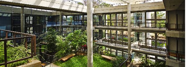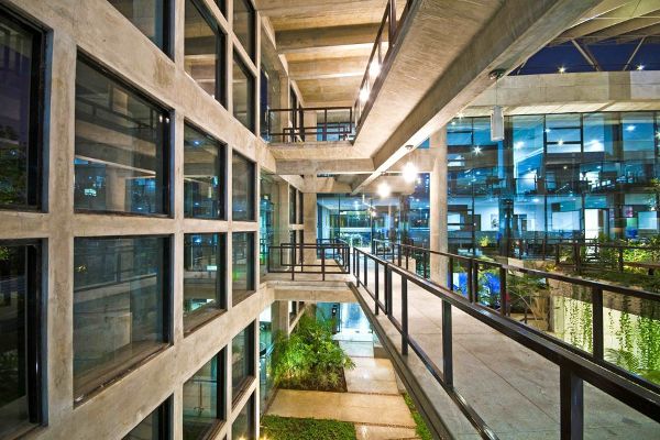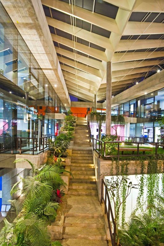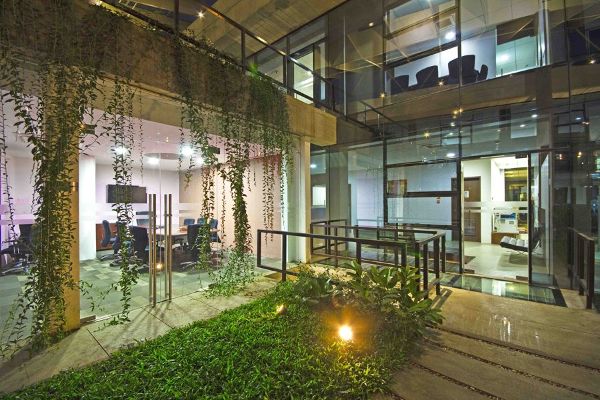 印度工作室CORE architecture受委托為當地公司EBIL開發一個總部大樓,并設置了一個節能建筑,將項目的高端技術部分與突出綠色設計的建筑視覺相結合。為了滿足這些要求,同時,考慮到建筑的使用者——員工,核心地提出了一個將原始的混凝土結構作為內部基礎,郁郁蔥蔥的熱帶花園的基地。