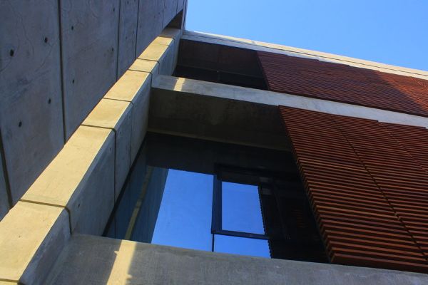 建筑在功能上分為兩個部分——它們都大致是東西向的,長立面朝北和朝南。東側和西側留有非常小的開口或沒有開口,以遮擋早晨和晚上水平的太陽。辦公室工作所需的所有光線都來自南北兩面,它們完全開放,在夏季只能產生漫射光。