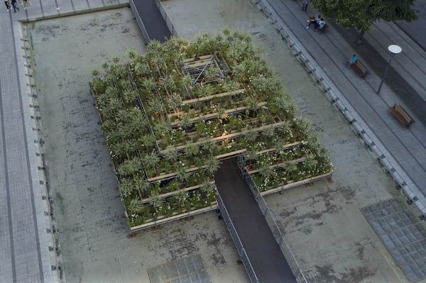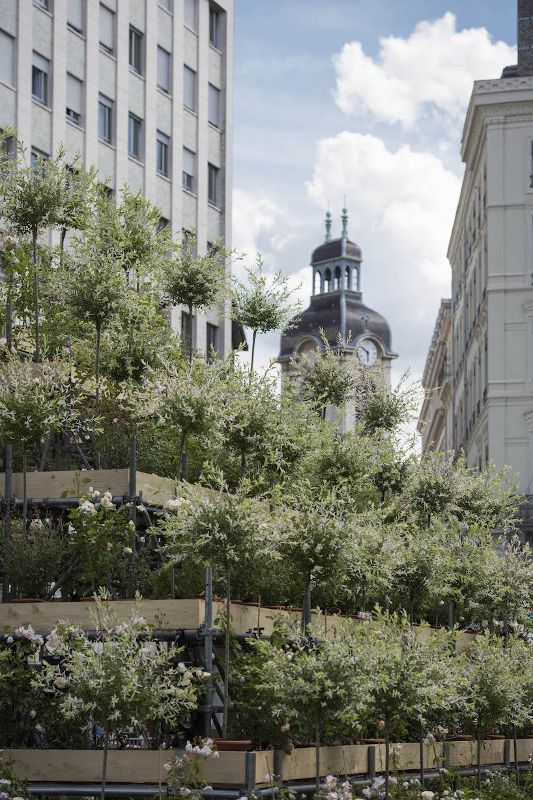 法國植物藝術家Patrick Nadeau與生產機構Tetro合作,用植物塑造建筑。使用日本的灌木和鮮花,設計師在里昂的中心設置了一個綠色圓頂。