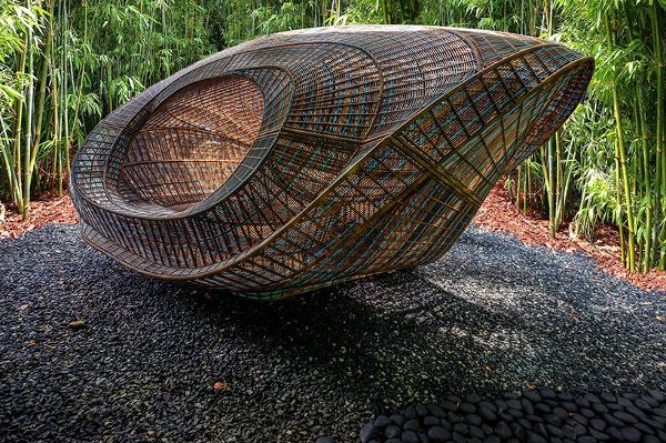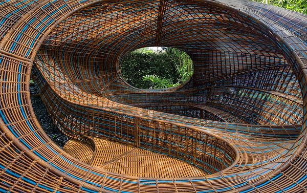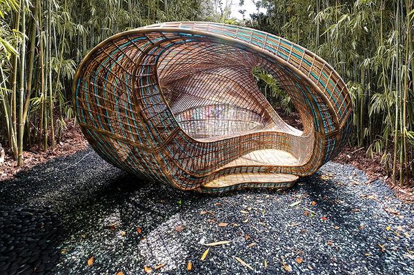 UN工作室是由ben van berkel創(chuàng)建的一家荷蘭建筑公司,該工作室設(shè)計(jì)了一種可移動(dòng)結(jié)構(gòu),它被設(shè)想為一個(gè)讓人休息、靜思和專注的地方。該項(xiàng)目是“革命預(yù)制館系列”的一部分,該裝置集多種功能于一身,以豐富現(xiàn)有空間。使用100%可回收的高密度聚乙烯(HDPE)作為材料,先經(jīng)過數(shù)字化設(shè)計(jì),再由技能嫻熟的工匠手工編織。