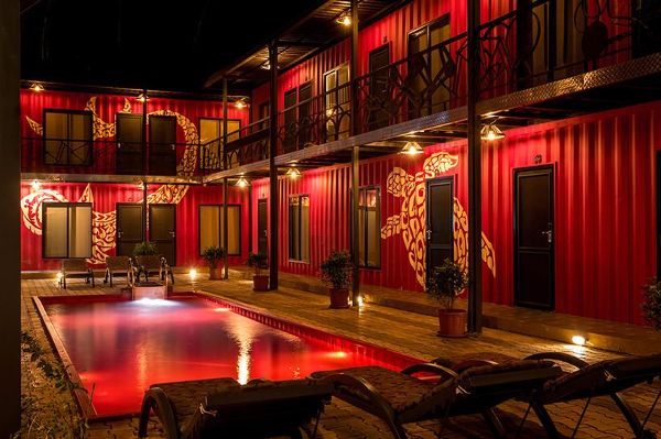 位于印度baga goa,“海灘盒子”酒店完全由循環利用和回收材料制成,使用集裝箱作為結構。酒店有16個房間,一個內部餐廳,一個酒吧和一個游泳池,所有的房間都被涂成不同深淺的紅色,并與木質表面結合。