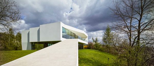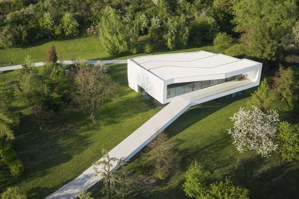 KWK PROMES的波蘭建筑師Robert Konieczny介紹他最新的住宅——“一路”住宅。這個住宅坐落在一片狹長的可俯瞰河流的陸地上。從上面的道路和下面的碼頭均可進入一條跨越整個場地的突出的車道。Koieczny使用這條車道作為構(gòu)造元素,它從土地上剝離出來,包裹著建筑物,構(gòu)成天花板、屋頂和墻壁。