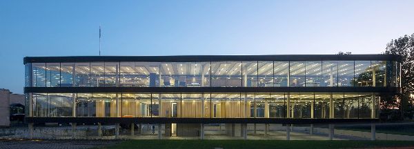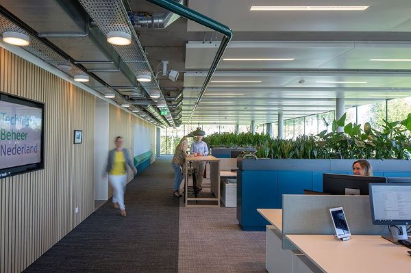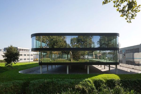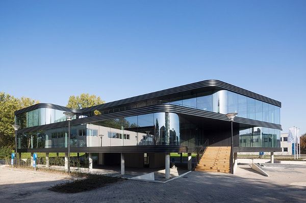 二層的懸挑結構位于兩層結構的交叉位置,擁有最好的視野,也突出了拐角處的設計。就在荷蘭EVA Architecture建筑事務所設計的“曲線”大樓的二層背面,懸挑結構退回到原位,創造了一個屋頂花園,并以此作為主入口的標志。整座建筑的電力都是由太陽能板產生的。栽種了Mossedum草的屋頂提高了雨水的滲透能力。可控制二氧化碳的區域組合式空調機組和二氧化碳探測器能夠保證不造成能源的浪費。該辦公大樓將被評為4A級節能建筑,其節能效果比官方的規定高出了70%。
