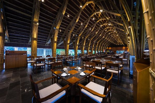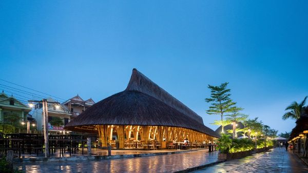 這家位于越南中部沿海城市同海的餐廳,它幾乎全部用竹子建造。餐廳屋頂采用細長的船形設計,屋頂下面的用餐區域完全向周邊的環境敞開。沒有墻壁和其他隔板的阻擋,不僅微風可以穿過整個餐廳,在炎熱的天氣下為餐廳帶來涼爽,而且這樣的設計也讓餐廳與周邊環境顯得更為融洽和諧。