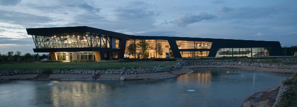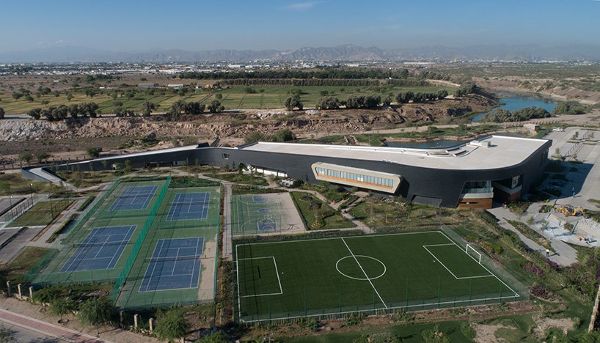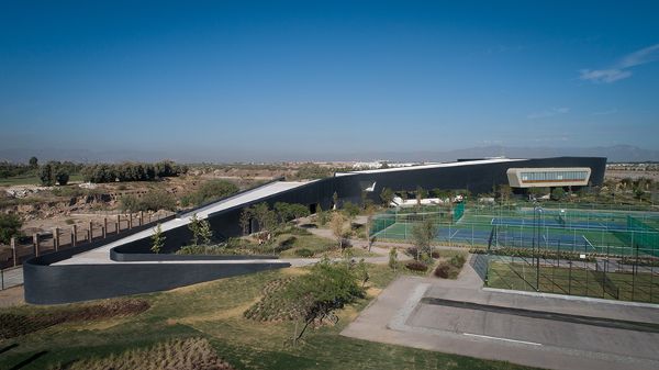 在墨西哥,Budic建筑設計公司完工了一個集運動與休閑為一體的設施的建造。此設施參考鄰近的“納扎斯”河的地勢,外觀設計成蜿蜒曲折的形式。此項建筑工程坐落在兩個洲和兩個城市中間,它以流暢的幾何圖形的形式浮現在地面之上,形成了一個可通過的通往屋頂的大露臺,因此被人們稱為一個“軟邊界”。與此同時,建筑本身由深色的石板覆蓋,有著彎曲的外觀走向。