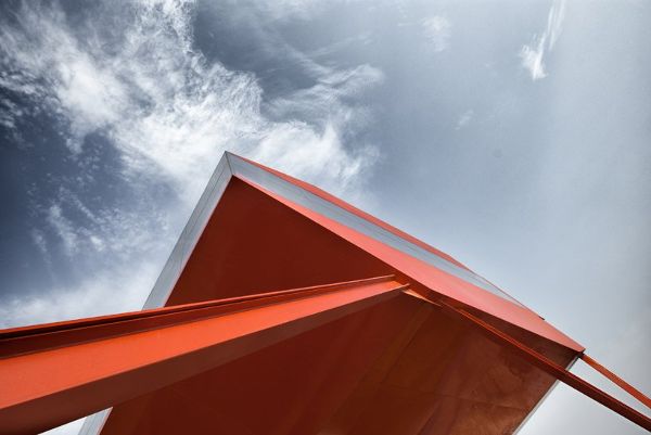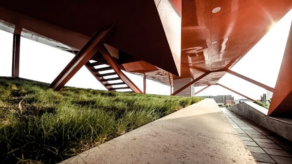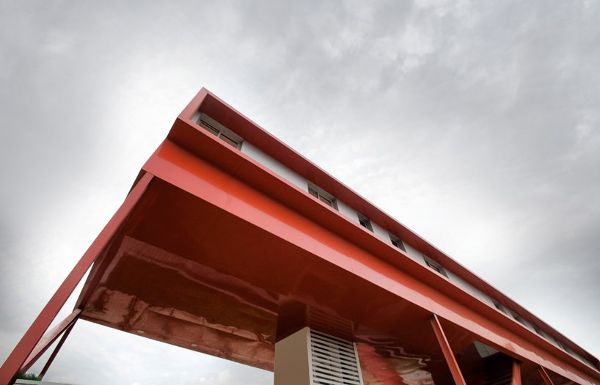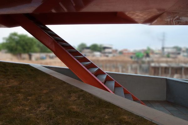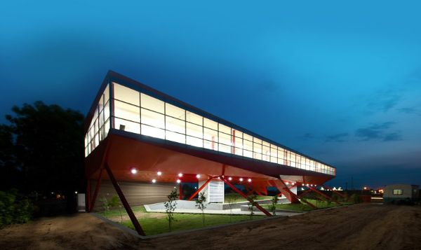 由FLXBL工作室設計的一家城市建筑公司skyline辦公樓的辦公室面積為370平方米,在印度艾哈邁達巴德的一個工業區,它被賦予了引人注目的組合形態,在艾哈邁達巴德呈現出一種非傳統工業區的樣式。紅色的形狀像一個折紙模型漂浮在花園區域的細長鋼梁上,賦予建筑工業的美感。