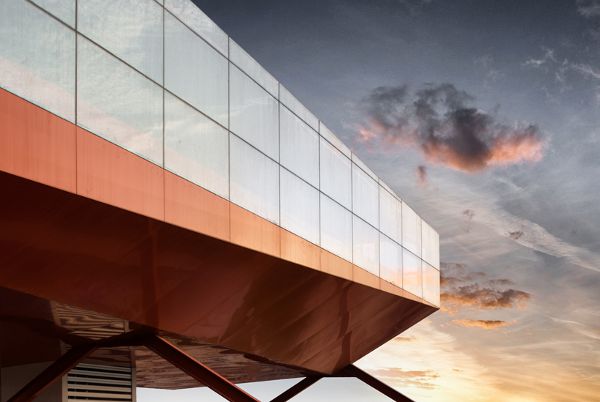 多維的平面在景觀的區域被向前推進,并且與從高速公路上看到的吸引人注意的漂浮物體相連。有機形式通過內部空間進行,賦予其活力,通過三面全景玻璃墻向外延伸到地平線。