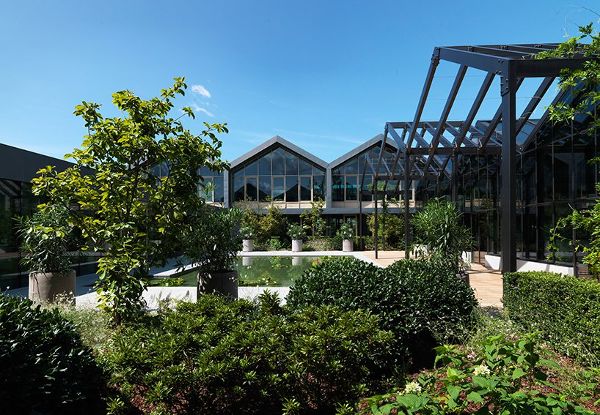 del buono gazerwitz的綠色區(qū)域有不同的功能,包括兩個內(nèi)部庭院、科學(xué)植物園、建筑周圍的一個大花園和綠色千米跑道。在科學(xué)植物園里,一些用于化妝品配方的植物品種被種植出來,形成了一個露天實驗室。