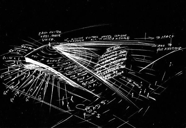 Es Devlin的設計以照亮的“空間信息”為特點,將邀請世博會參觀者參與其中。Es Devlin解釋說:“這個想法的靈感來自于物理學家斯蒂芬?霍金2015年的最后一個項目“突破信息”,霍金和他的同事意圖通過一場全球競賽,邀請全世界的人一起來思考,如果有一天我們在太空中遇到其他先進的文明,我們要傳達什么信息來表達我們的星球。”
