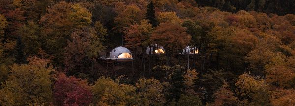 bourgeois/ lechasseur建筑事務所在魁北克附近的petite-riviere-saint-francois森林中完成了三維穹頂結構的“charlevoix穹頂”,設計用于作為四季的生態豪華住宿。作為一個更大的旅游項目的一部分,每個穹頂都坐落在一個單獨的木制天井上,可以俯瞰山區景觀,并配有一個熱水浴缸和室外露臺。