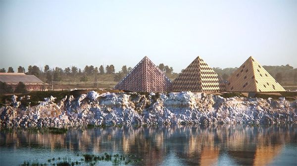 每棟建筑都將采用獨特的結構形式,并與當地波本威士忌制作過程的視覺元素相結合。或許整個園區的焦點將是三個金字塔式建筑物,它們位于場地的中心。同時,采石場將改造成人工池塘,通過石灰石過濾湖水,變成清澈的湖泊。