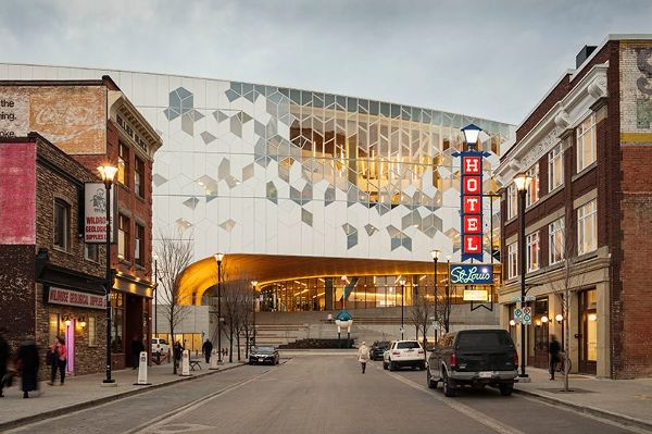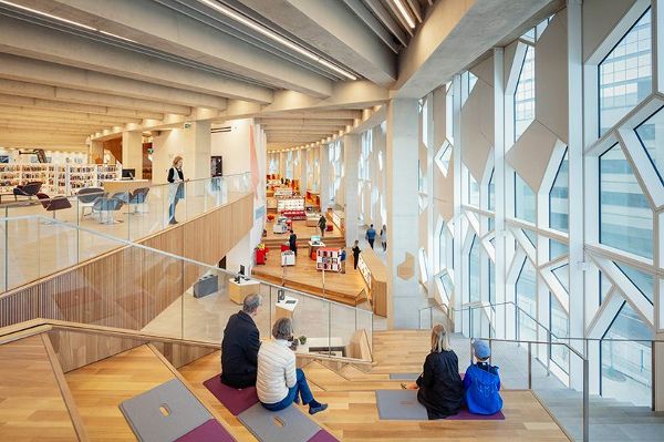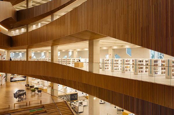 卡爾加里的sn?hetta和加拿大設計的新中央圖書館項目旨在歡迎平時兩倍的年游客,讓他們了解什么是北美最大的圖書館系統,超過一半的城市的居民是活躍的持卡人。原建筑建于1988年,占地22,297平方米(24萬平方英尺),新建筑比原建筑擴大了2/3,并圍合了半月形的輕軌線。