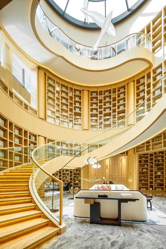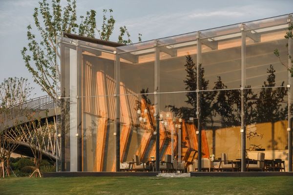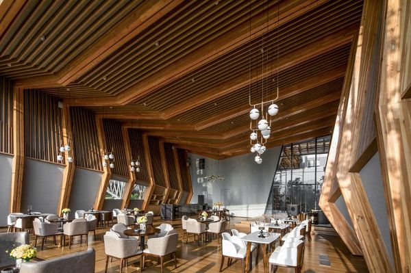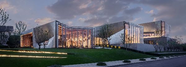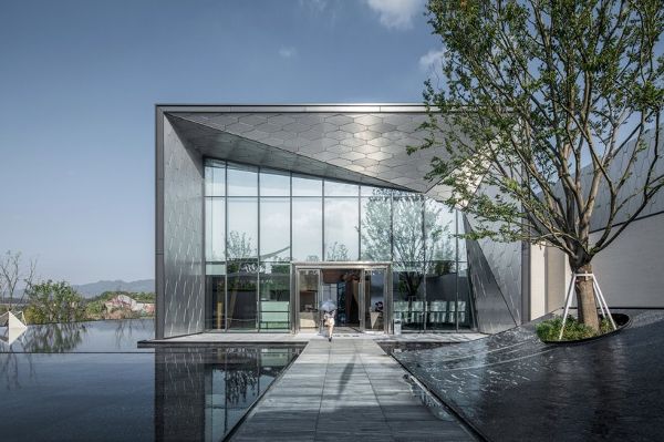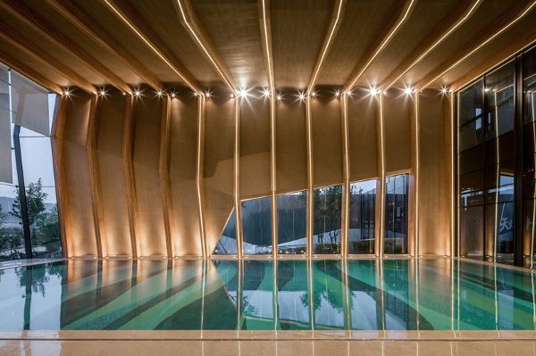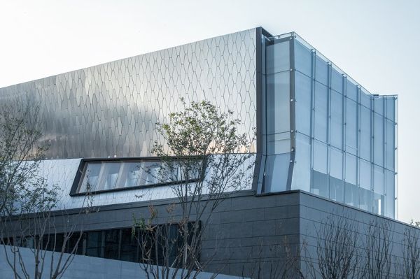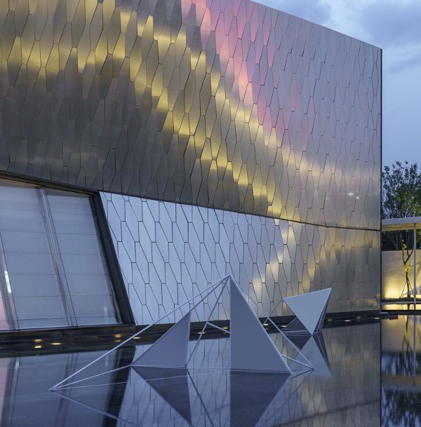 成執設計運用物質性來追求在建筑、空間、形式和結構上體現“真實性哲學”。該公司利用木材將建筑與空間和周圍環境緊密聯系在一起,從而賦予建筑一種“誠實的美德”。暴露的膠合木結構構件是建筑中最重要的視覺元素,建筑師以重慶傳統的折坡屋頂秩序的形式語言轉換成為建筑形體。建筑師以六邊形鋁板作為主要界面材料,覆蓋于內部結構之上。表皮順應真實的建筑形態變化,每塊蜂窩鋁板精細包邊,開縫拼掛,細節考究。數字化的表現手法營造出“Cyberpunk”(賽博朋克)的超時空現代感,表皮在自然光下形塑特質,追隨光線的變化,產生復雜而神秘的視覺效果。