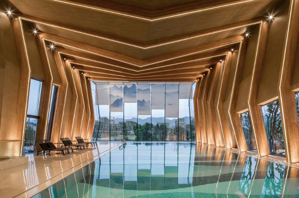 雖然每個建筑都采用線性組織,但成執設計引入了豐富的空間特征和剖面變化。由此產生的效果是一個個扭曲的盒子展現出極其豐富的空間特色。建筑師利用木結構的特色,以結構形態塑造建筑空間和形體,每個空間與走廊和庭院有機地連接起來,將空間與結構產生緊密聯系。