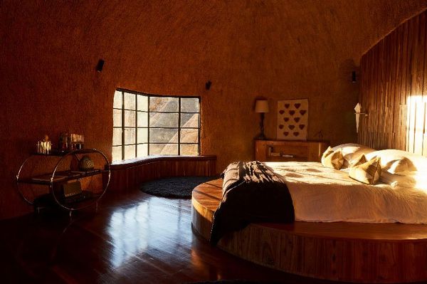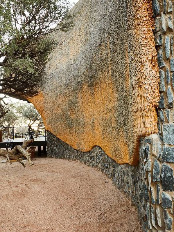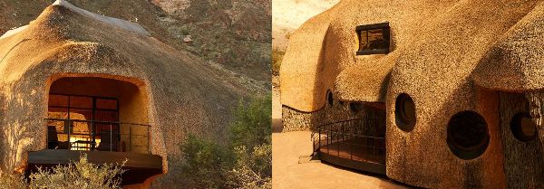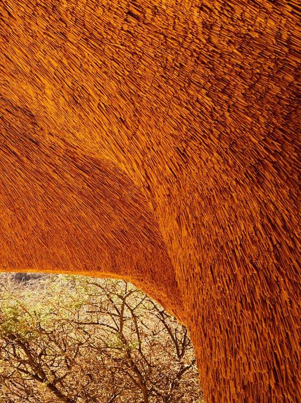 離最近的小鎮也要125公里,這個私人小屋幾乎隱藏在周圍的風景中。由來自納米比亞北部贊比西河岸邊的蘆葦制成的茅草提供了天然的隔熱,同時創造了一個前所未有的造型。磚和鋼框架是現場手工制作的。