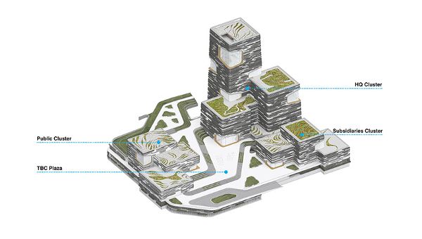 廣場構成了TBC論壇的主干,將所有的項目用一個公共區域連接起來。這個區域由幾個靈活的室外空間組成,這些室外空間可以用于舉辦社交和休閑活動,同時也將建筑與周邊環境聯系起來。屋頂受到高加索高低不同自然景觀的啟發,形成了TBC論壇的第五立面,TBC論壇創造了一個垂直的景觀集群,成為Lisi綠谷和格魯吉亞全景的一部分。