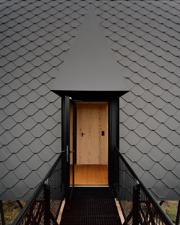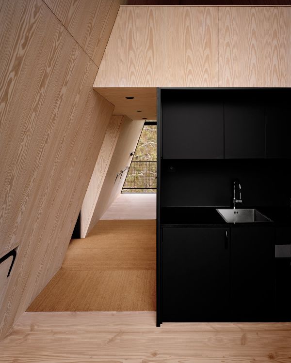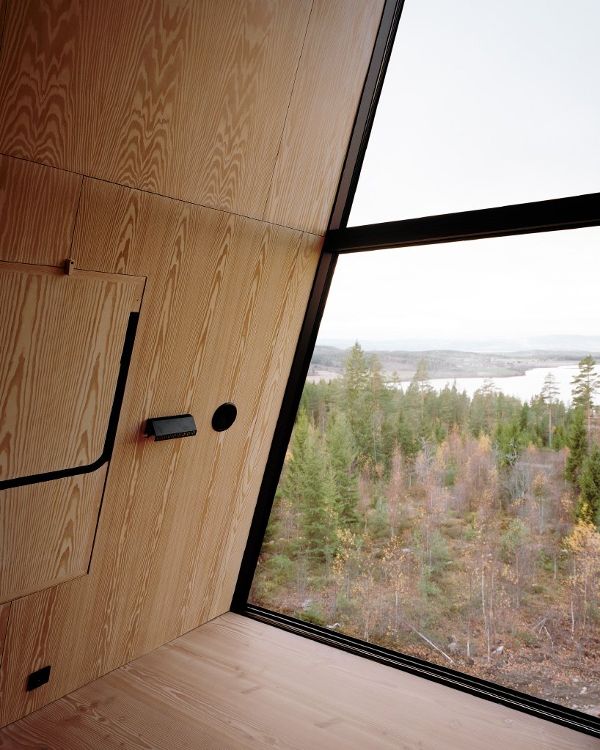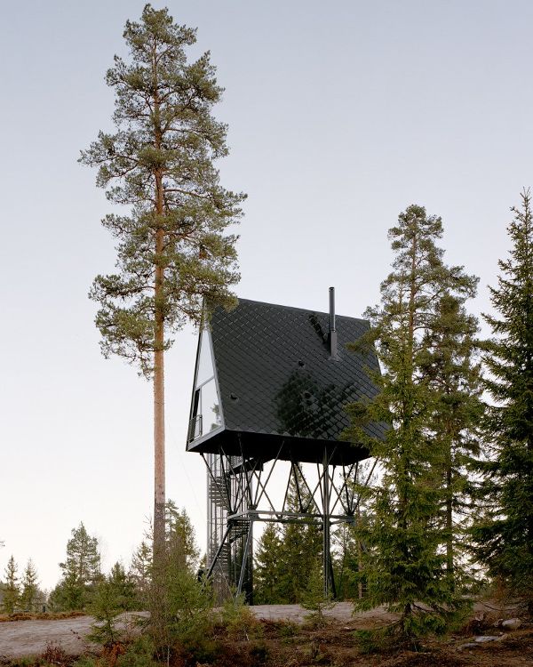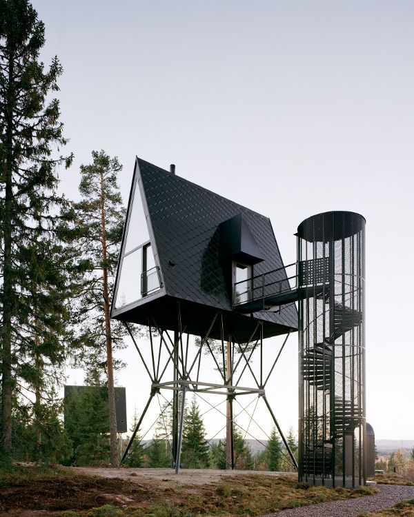 在開發(fā)這個項(xiàng)目時,基于奧斯陸的建筑師espen surnevik有三個主要的參考點(diǎn):作者和插畫家tove jansson的作品,moomins_的創(chuàng)造者;在干燥的季節(jié)里,為了尋找煙霧和火焰而建造的消防塔俯瞰森林;以及在北美常見的a型框架小屋。蘇納維克解釋說:“這種原始形狀在寬度上有可能是親密的,在高度上有可能是不朽的。”