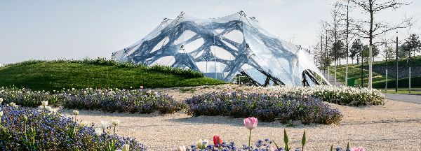 展館占地面積約400平方米(4305平方英尺),自由跨度超過23米(75英尺)。它是由一個完全透明,機械預應力ETFE膜包圍。主承重結構完全由60個定制的纖維復合材料組成,比傳統的鋼結構輕5倍左右。