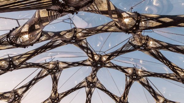 展館的目的是將這種適應負載的生物原理,從而將高度差異化的纖維復合系統轉化為建筑。“人造復合材料,如用于該建筑的玻璃或碳纖維增強塑料,非常適合這種方法,因為它們與天然復合材料具有相同的基本特性,”團隊繼續說道。“就在幾年前,這個展館還不可能被設計或建造。“