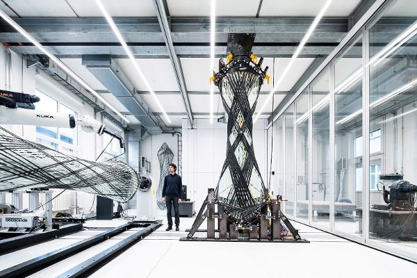 “在生物學中,大多數承載結構都是纖維復合材料,”設計團隊解釋說。它們由纖維制成,例如纖維素、幾丁質或膠原蛋白,以及支撐它們并保持其相對位置的基質材料。生物結構驚人的性能和無與倫比的資源效率源于這些纖維系統。它們的組織、方向和密度都經過了精細的調整,并在局部發生變化,以確保材料只運用于需要的地方。