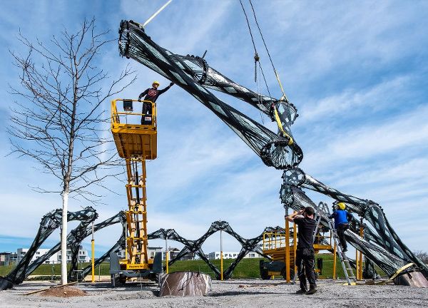 該項目需要經過詳細的測試程序才能獲得完全的批準,這表明一個纖維成分可以承受250千牛頓的壓縮力,相當于15輛汽車的重量。該展館將于2019年4月17日開幕,位于2019年德國聯邦加滕索夏季島嶼的中心,并將舉辦名為“zukunftskarusell”的展覽。