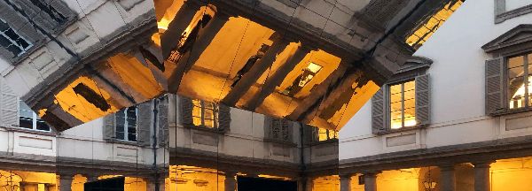 智利建筑工作室pezo von ellrichshausen在米蘭巴洛克風(fēng)格的palazzo litta中創(chuàng)建了一個(gè)展館,被描述為“與歷史環(huán)境的直接呼應(yīng)”。該建筑是為2019年米蘭設(shè)計(jì)周設(shè)計(jì)的,它的結(jié)構(gòu)與歷史背景的尺寸和比例直接相關(guān),建成于1761年。圍場(chǎng)保持對(duì)天空的開放,重復(fù)了庭院的方形比例,四個(gè)入口點(diǎn)提供了進(jìn)入中央房間的入口。