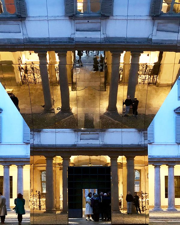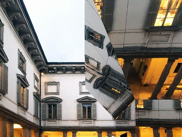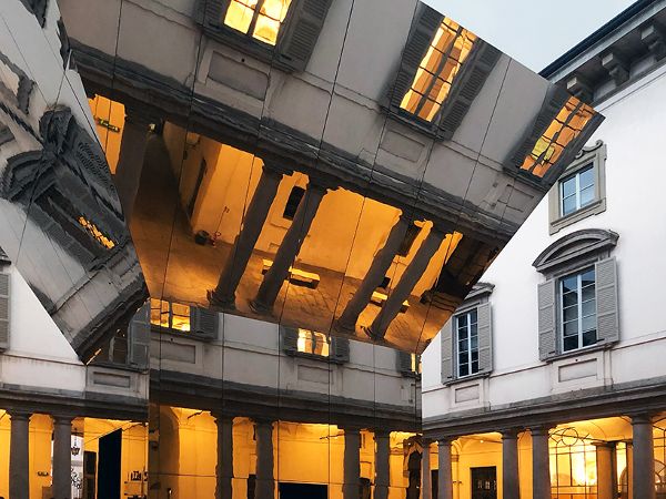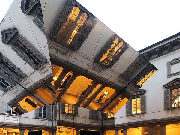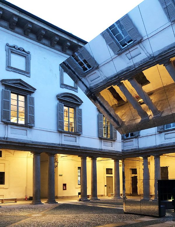 pezo von ellrichshausen繼續(xù)說道:“如果游客在地面上看到這座史無前例的紀(jì)念碑,他們抬頭就會(huì)看到自己倒映在令人印象深刻的傾斜天花板上。”該項(xiàng)目是“l(fā)itta變奏曲”的一部分,由mosca partners在palazzo litta舉辦的展覽匯集了來自世界各地的22家參展商。
