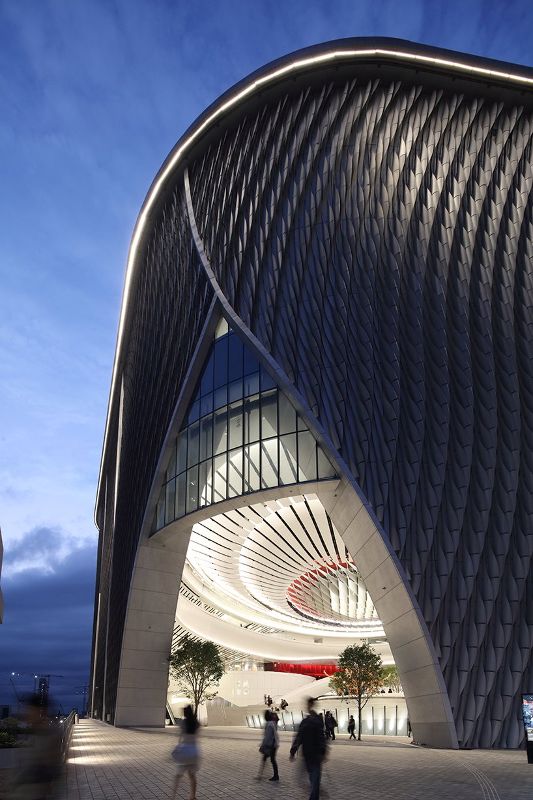 該項(xiàng)目由revery和ronald lu設(shè)計(jì),其特點(diǎn)是引人注目的曲線立面,在城市新的藝術(shù)和文化區(qū)入口處,它被照亮,創(chuàng)造了一個(gè)迷人的地標(biāo)。外部的設(shè)計(jì)旨在重新詮釋中國典型的月門主題,熱情地邀請人們進(jìn)入內(nèi)部空間。戲曲中心擁有一個(gè)令人印象深刻的1000個(gè)座位的大劇院,獨(dú)特地坐落在建筑的頂部,兩側(cè)是兩個(gè)戶外空中花園,可以欣賞到海港和整個(gè)城市的美景。