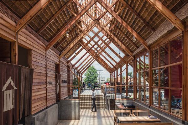 地形建筑師使用當(dāng)?shù)氐蔫駱?shù)建造了亞馬森奇,這是一座商業(yè)建筑,由烏干達(dá)首都坎帕拉的一家日本餐廳、一家咖啡館和一些小商店組成。總部位于東京的建筑事務(wù)所于2011年由小林一子(ikko kobayashi)和木村文雄(fumi kashimura)創(chuàng)建,建筑頂部是一個(gè)巨大的茅草屋頂,與平緩的坡地形成直角,與等高線形成互補(bǔ),以這種方式保持自然的斜坡。