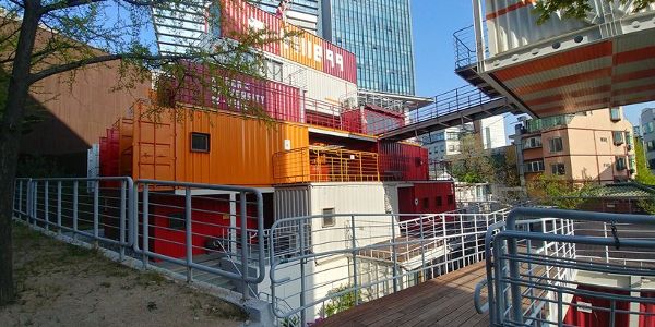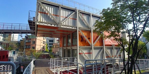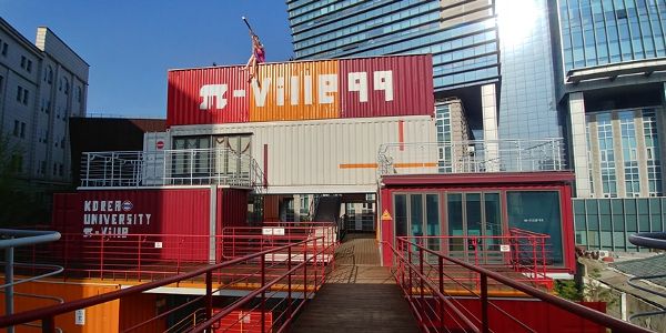 位于首爾的韓國大學的π-ville 99重新改造校園建筑以擴大學生空間。π-ville 99年,由高密度城市設計建筑師旨在為大學提供額外的活動空間,為學生營造一種全新的氛圍。大學附近的空地被改造成一個用回收集裝箱建造的創新性建筑。