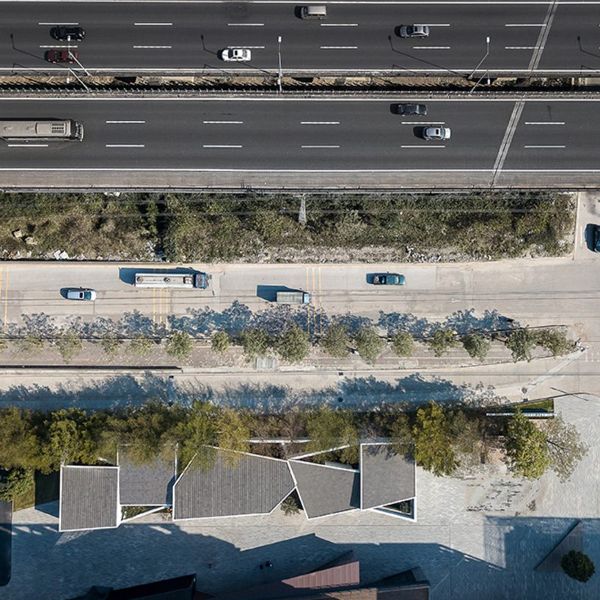 由mozhao建筑事務所設計的生活藝術館位于深圳市寶安區,它結合了兩個不同的項目:一個獨立的家具商店和一個水果茶室。建筑由六個不同高度的墻體單元塊組成,在中間融合成一個大的室內空間,包含家具商店的展示空間。