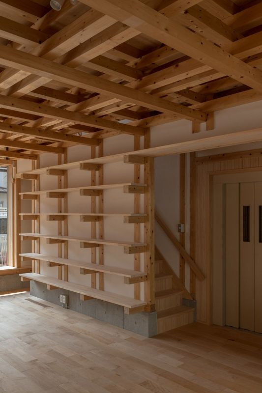 森田和也設(shè)計(jì)事務(wù)所在京都建造了一個(gè)兩層的木格子結(jié)構(gòu),用來(lái)容納淺田檔案圖書(shū)館。這座建筑由9厘米見(jiàn)方的廉價(jià)柏木建成,反映了圖書(shū)館的館藏,它關(guān)注人權(quán)和社會(huì)受壓迫的人們的支持。柏木通常被認(rèn)為太脆弱、太小,不能用于建筑。