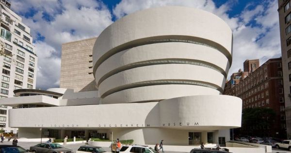 古根海姆博物館,紐約(建于1956年至1959年)圖片由古根海姆博物館提供。流水別墅的圖片由賓夕法尼亞州西部保護區機構提供。懷特還將有機形式融入他設計的古根海姆博物館,游客先乘坐電梯到達建筑物頂部,然后沿著緩緩的螺旋式坡道往下走。