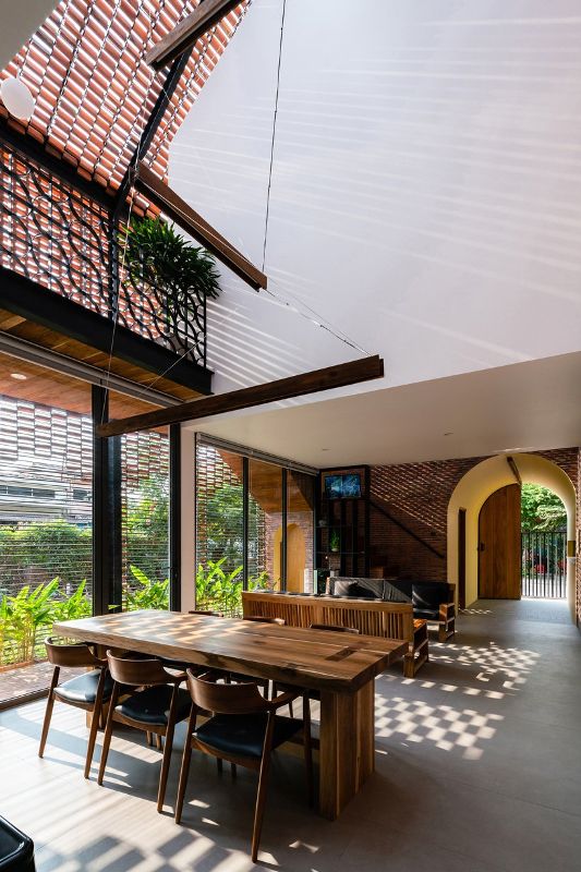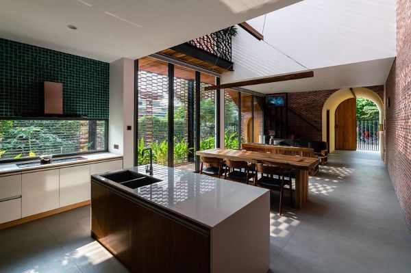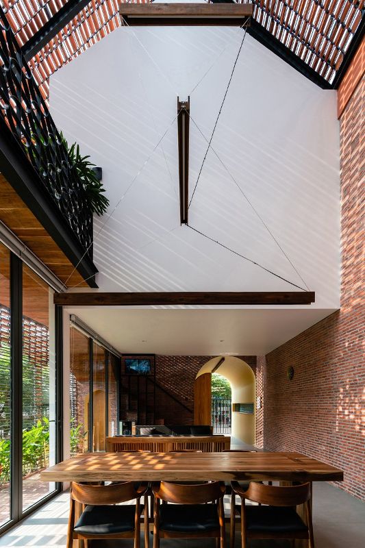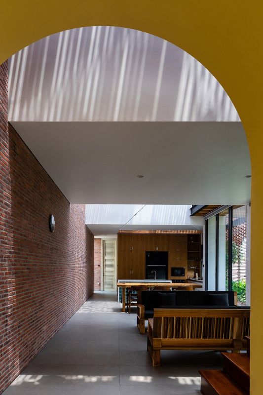越南工作室指出:“從上面看,這棟房子就像兩個(gè)純白色的小塊,與其單獨(dú)的磚殼形成對(duì)比。”“這就是我們對(duì)新舊、私人與公共以及家庭世代之間關(guān)系的隱喻。更重要的是,正是家庭價(jià)值觀庇護(hù)并激勵(lì)著我們所有人。”