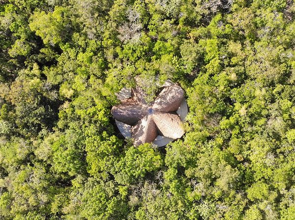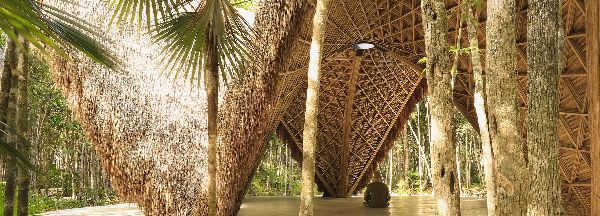 位于墨西哥圖盧姆的原生叢林保護(hù)區(qū)中心,“LUUM寺廟”為自然和冥想提供了一個(gè)安靜的自然環(huán)境。該展館由位于圖盧姆的建筑師CO-LAB設(shè)計(jì)事務(wù)所設(shè)計(jì),采用五面懸鏈結(jié)構(gòu)的形式,由可持續(xù)養(yǎng)殖的竹子制成的清掃墻,以及結(jié)構(gòu)依賴性共存的拱形拱頂。 當(dāng)微風(fēng)穿過叢林樹冠并通過開放式結(jié)構(gòu)時(shí),它可以增強(qiáng)斑駁光線和陰影的相互作用,進(jìn)一步增強(qiáng)空間的空靈和寧靜品質(zhì)。