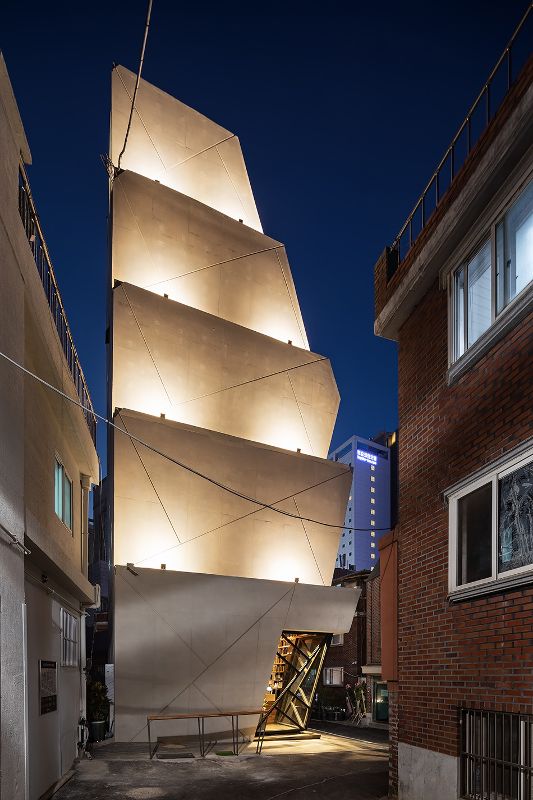 韓國建筑師文在寅(moon hoon名字也起的這么蹭熱度)完成了首爾歷史中心的一座建筑,這里是一家芝麻油公司的總部。該綜合體位于東大門市場附近的一個安靜的社區,周圍環繞著各種規模的其他物業。東大門市場也是扎哈·哈迪德設計的“DDP文化綜合體”所在地。