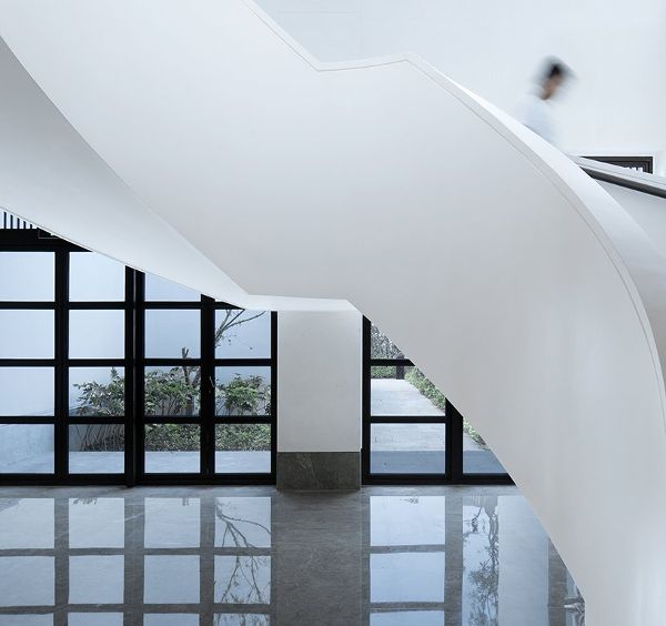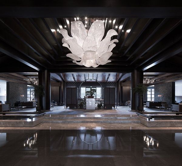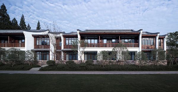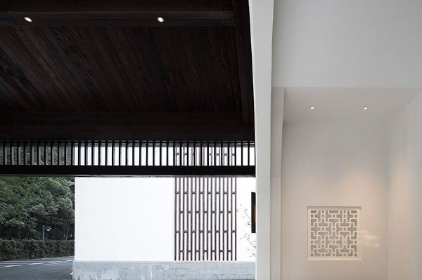 建筑的外部表達借鑒了杭州歷史建筑風格,有白色的墻壁、黑色的屋頂瓦片、深深的屋檐和深色的木板。一旦進入室內,相同的特征繼續貫穿整個室內,創造一個溫暖和誘人的氛圍。總體而言,材料、形式和顏色的組合形成了一個平衡當代奢華與鄉土設計痕跡的建筑。
