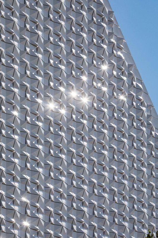 ?meck architekten設計的教區教堂seliger pater rupert mayer位于慕尼黑東北部的poing市,采用雕塑形式,頂部有獨特的屋頂景觀。為社區創建新的標志性建筑,建筑采用了該地區出產的堅硬的石頭作為基座,上部包裹在白色瓷磚中,由于白色瓷磚不規則的幾何形狀,產生獨特的外觀折射的光效果。