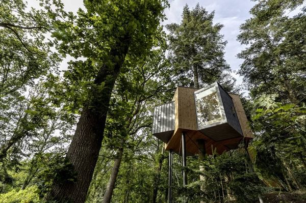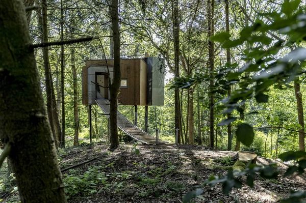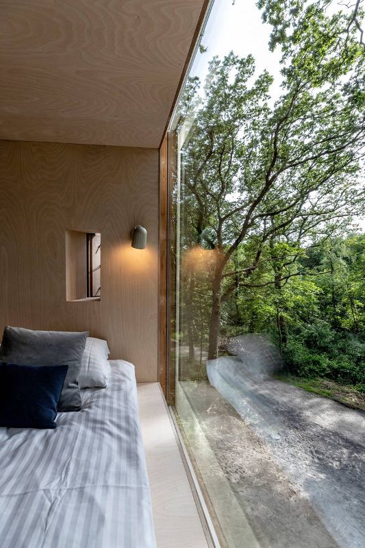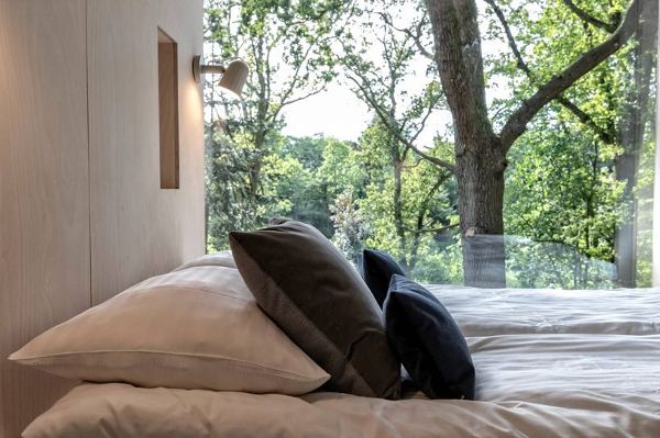 Sigurd Larsen設(shè)計(jì)的樹頂旅館_l?vtag_位于丹麥最長峽灣Mariager的一個(gè)小而古雅的森林里,一共由9個(gè)小木屋組成,每個(gè)小木屋最多可容納4位客人居住。小木屋的正中間生長著一棵樹,游客可以直接接觸到周圍的自然環(huán)境,從地板到天花板的整面玻璃幕墻可以欣賞到森林的景觀,并在下午讓陽光滲透進(jìn)整個(gè)房間。