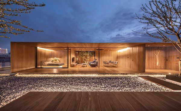 WARchitect在泰國曼谷設計了一座5層公寓樓之上的空中景觀住宅,位置獨特。屋頂以前只用于儲存水箱,留下了一片空曠的空間。因此,房主決定建一座小房子供自己使用。鑒于其不尋常的背景,房子有一個混凝土庭院而不是正常的地面層,而樹木則被周圍建筑物的垂直線所取代。