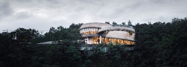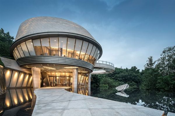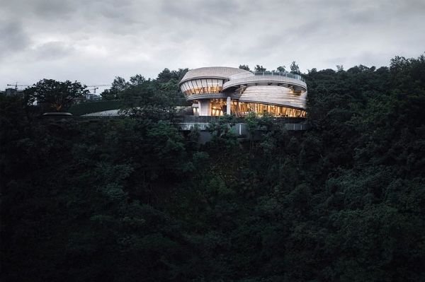 在重慶照母山山頂上的一個(gè)關(guān)鍵位置,LWK+Partners為他們的客戶龍湖地產(chǎn)設(shè)計(jì)了一個(gè)陳列室。把它作為一個(gè)展示豪華別墅和待售房屋的“銷售畫(huà)廊”,該項(xiàng)目被設(shè)想為“盤(pán)旋在宏偉的景觀之上的輝煌寶石”。