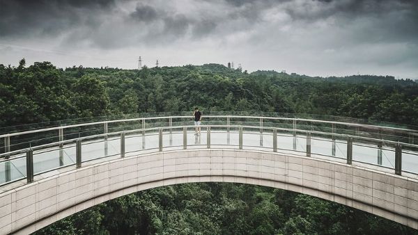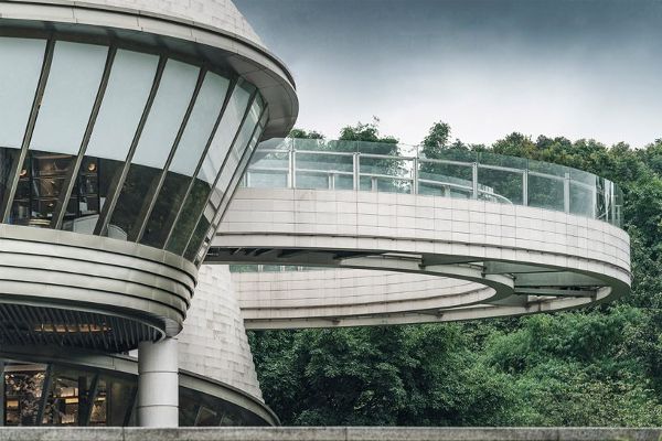 這座建筑的規(guī)劃包括兩個(gè)展廳,通過(guò)一座玻璃底的橋相連,也就是所謂的“天空步道”。建筑師這樣做的是為了最大限度地欣賞下面山谷的景色,橋梁從主樓懸挑而出,為游客提供了戲劇性的體驗(yàn)和周圍山地景觀的全景。