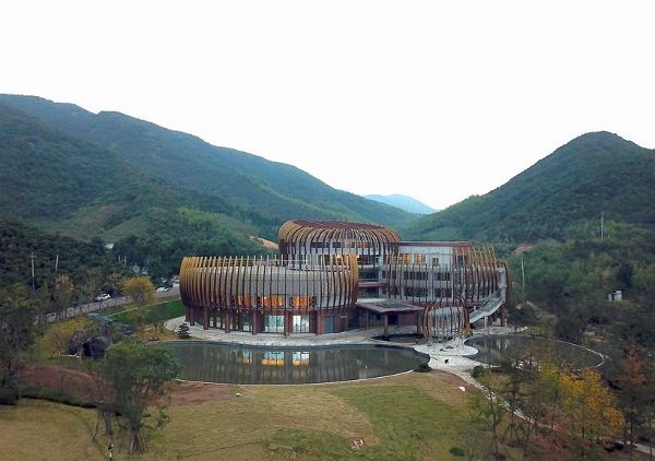 由JADE+QA設計,室內由stylus工作室設計,joe lalli narada度假酒店的特色靈感來自于中國杭州附近的莫干山周圍的竹林和松林。這座14000平方米的建筑是休閑度假酒店的主要設施,并容納了上層的主要接待室、宴會和會議室、餐廳和酒吧,并且包括整個度假酒店位于地下的設施用房。