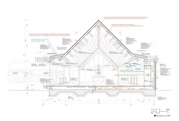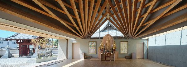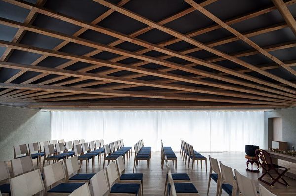 新kannondō最明顯的特征是其結構表達屋頂,跨越大廳的長度沒有一根柱子的支持。設計團隊使用的設計策略得到了這樣的評價:“我國人字形屋頂?shù)乃聫R是一個樹狀結構的形象,因為殿的人字形屋頂讓人想起佛陀的啟示下林登樹,以及其結構的景觀讓人想起光線的回來反射。“該項目詳細闡述了該項目對當?shù)厣鐓^(qū)宗教機構轉型的回應,團隊繼續(xù)說道:“通過在建筑類型上疊加新的價值觀,這些建筑類型往往會被宗教設施的固定觀念所束縛,由此產(chǎn)生了與以前不同的使用方式,并由此產(chǎn)生了新的下一個價值觀,并再次重疊。”