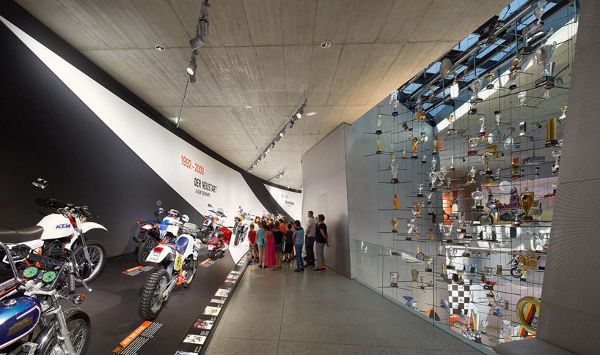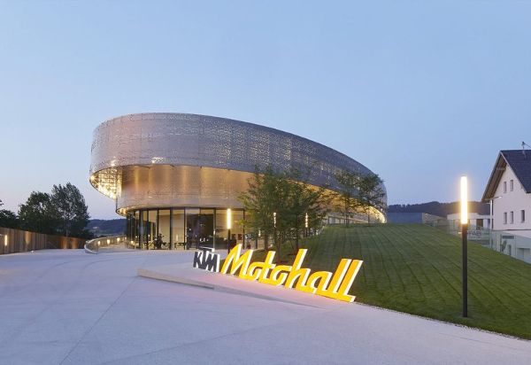 奧地利建筑公司X Architekten為KTM motohall建造了新建筑,其中包括展覽空間和活動場地。該公司的新總部位于奧地利的馬蒂霍夫,充分體現了該品牌的活力。該公司的口號“準備比賽”是建筑幾何形狀的靈感來源,類似于一條環繞場地的加速金屬帶。