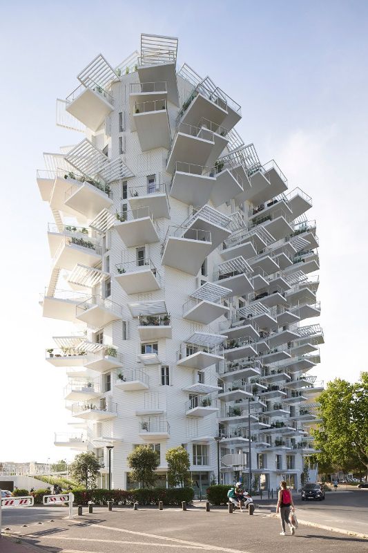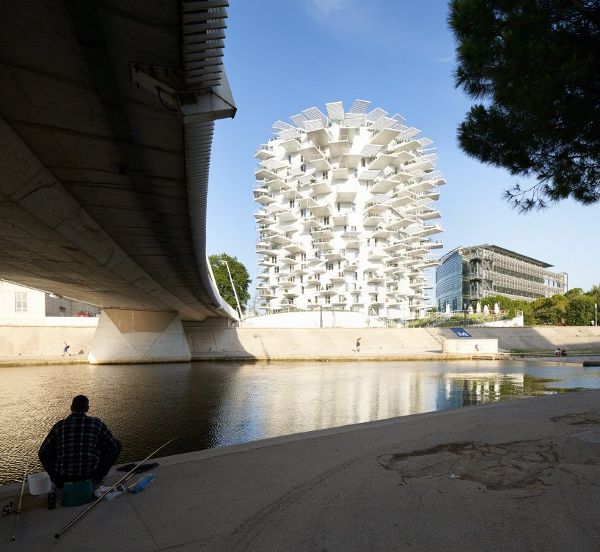 這座1萬平方米的建筑被設計成從地面上有機生長出來的樣子。從立面出發,該方案的各個“分支”為相鄰的地產提供了選定的遮陽區域。該塔還歡迎蒙彼利埃的居民和游客一樓的餐廳和藝術畫廊,和一個閣樓酒吧,提供了全景的海洋和鄰近的山脈視角。