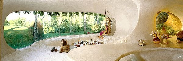 為了實現(xiàn)構(gòu)成有機住宅的彎曲形式,senosiain使用了ferrocement,這是一種復(fù)合材料,由輕質(zhì)鋼織物/網(wǎng)格加固的砂漿組成。鋼筋水泥的一個主要優(yōu)點是建筑物的形狀可以變得非常有趣。以其強度和靈活性而被吹捧,它可以用于諸如穹頂、屋頂和船體等復(fù)合曲面結(jié)構(gòu)。