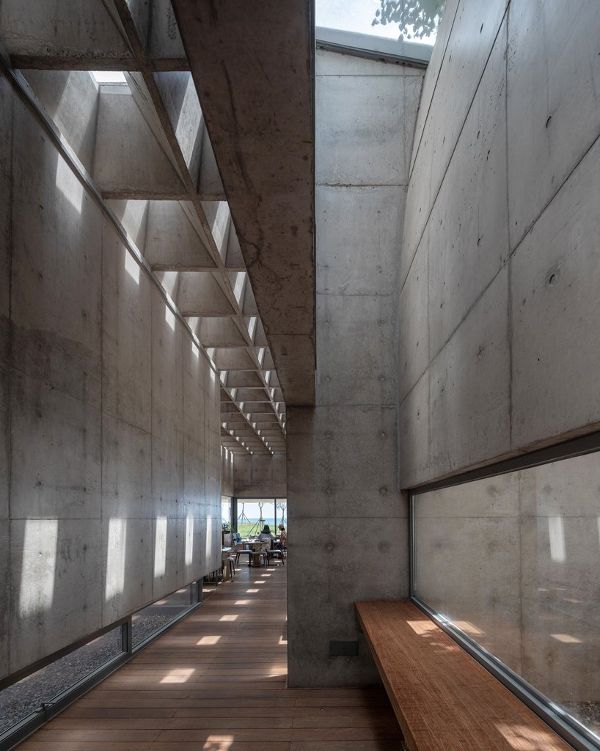 餐廳的內(nèi)部由混凝土華夫梁連接,由于柔和的光線和陰影的作用,創(chuàng)造了豐富的空間體驗(yàn)。裸露的混凝土材料也給餐廳帶來了溫暖的氛圍,使游客感到受歡迎和放松。總體而言,由于建筑內(nèi)部厚厚的暴露的混凝土和自然光,“海洋Y餐廳”的設(shè)計(jì)創(chuàng)造了一個邀請人進(jìn)入但又具有內(nèi)向性的地方。