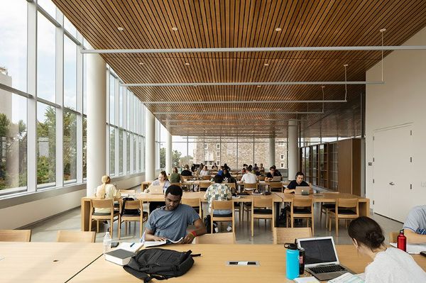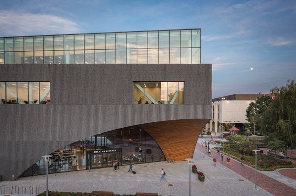 坦普爾大學由Sn?hetta設計的查爾斯圖書館于2019年秋季學期開館。該項目位于兩條主要步行街的交匯處,為該校學生提供了一個新的社交和學術場所。該設計是與Stantec合作開發的,對傳統類型里研究型圖書館作為書籍儲存庫的功能進行了重新詮釋,將建筑整合為多樣化的協作與社交型學習空間。