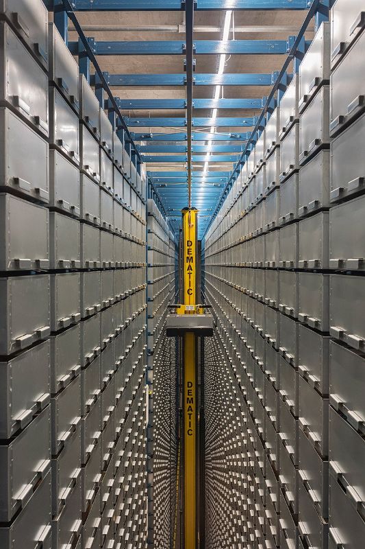 圖書館藏書主要存儲在高密度自動存儲和檢索系統(ASRS)中,它被親切地稱為“圖書機器人”。它高57英尺,跨越大樓三層,容量近200萬冊書籍的空間,目前存儲150萬冊,該程序減少了圖書存儲所需的空間,同時擴大了圖書館藏書的訪問通道,增加了協作學習、學術資源和個人學習空間的空間。